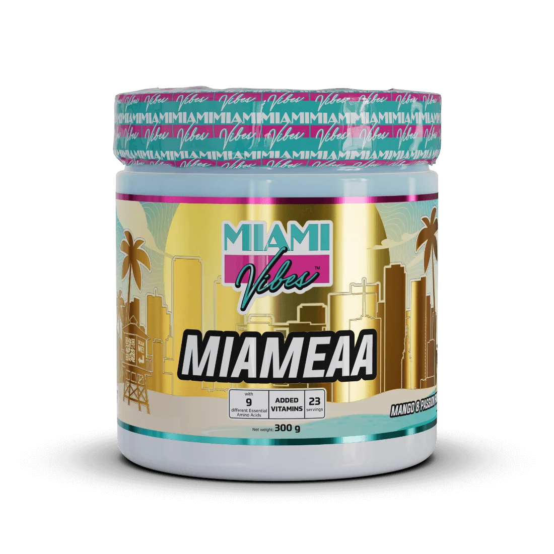 MIAMI VIBES MIAMEAA is packed with all nine essential amino acids (EAAs), designed to help you recover faster, build muscle, and stay energized throughout your workout. With a blend of L-Leucine, L-Isoleucine, and L-Valine (BCAAs), plus L-Lysine, L-Threonine, and more, this formula supports muscle protein synthesis, helping you get the most out of every training session. Vitamins B6 and B12 are added to reduce fatigue and boost your energy metabolism, making sure you’re ready to power through every rep.